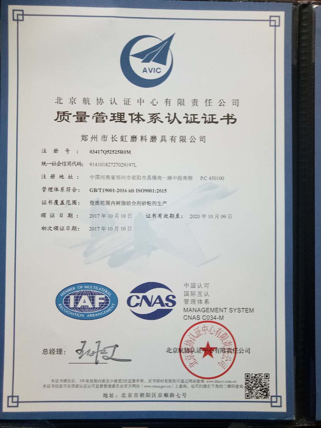 當(dāng)前位置:主頁(yè) > 新聞中心 長(zhǎng)虹公司順利通過(guò)ISO9001:2015認(rèn)證發(fā)布時(shí)間:2017/11/2 發(fā)布人:長(zhǎng)虹磨料 瀏覽:3176次 鄭州市長(zhǎng)虹磨料磨具公司搬遷新廠址后,更加注重產(chǎn)品質(zhì)量的管控,加強(qiáng)完善生產(chǎn)運(yùn)行質(zhì)量管理體系。2017年,公司邀請(qǐng)北京航協(xié)認(rèn)證中心審核組老師來(lái)我公司現(xiàn)場(chǎng)評(píng)估、審核。審核老師嚴(yán)格認(rèn)真的現(xiàn)場(chǎng)審核和評(píng)估,結(jié)合公司嚴(yán)謹(jǐn)、有效的質(zhì)量管控體系,公司一次性通過(guò)ISO9001:2015質(zhì)量管理體系認(rèn)證。